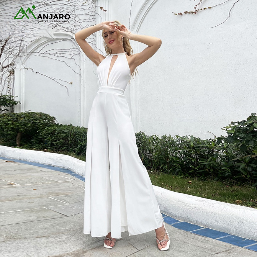 Designed with cut-out details, a thigh slit, and wide-leg pants, it creates a flattering silhouette while ensuring comfort and breathability. The eco-friendly, anti-static, and anti-pilling fabric makes it perfect for summer and autumn evenings, parties, or club events. With its combination of style, elegance, and durability, this jumpsuit is a must-have for modern, fashion-forward women.