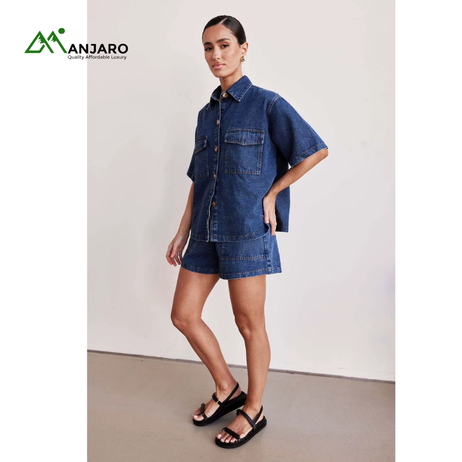 Crafted from a soft yet durable spandex–cotton blend, this denim outfit offers excellent breathability with a lightly windproof structure, making it ideal for warm seasons. The loose-fit short sleeve shirt provides all-day comfort, while the matching shorts deliver easy movement and a flattering casual silhouette.