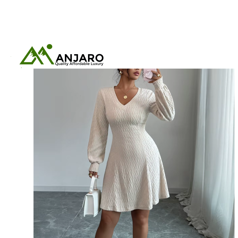 Step into effortless elegance with the Elegant V-neck Long Sleeve Short Dress for Women, designed for comfort and everyday sophistication. Crafted from a soft 93% polyester and 7% elastic blend, this breathable knitted dress drapes beautifully on the body while providing flexibility for daily movement. Its flattering V-neckline, long sleeves, and flared hem combine to create a chic A-line silhouette, complete with practical pockets for functionality. Perfect for casual outings, work, or weekend getaways during summer and transitional seasons.