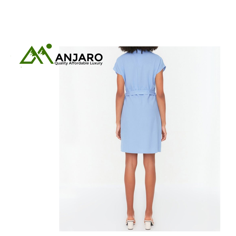 Slip into effortless style with the Blue Belted Shirt Dress, designed for casual days that call for confidence and comfort. Crafted from soft, breathable 100% Lyocell (viscose) with a woven texture, this mini-length dress features a flattering shirt collar, short sleeves, and a self-tie belt that defines the waist while keeping the vibe laid-back.