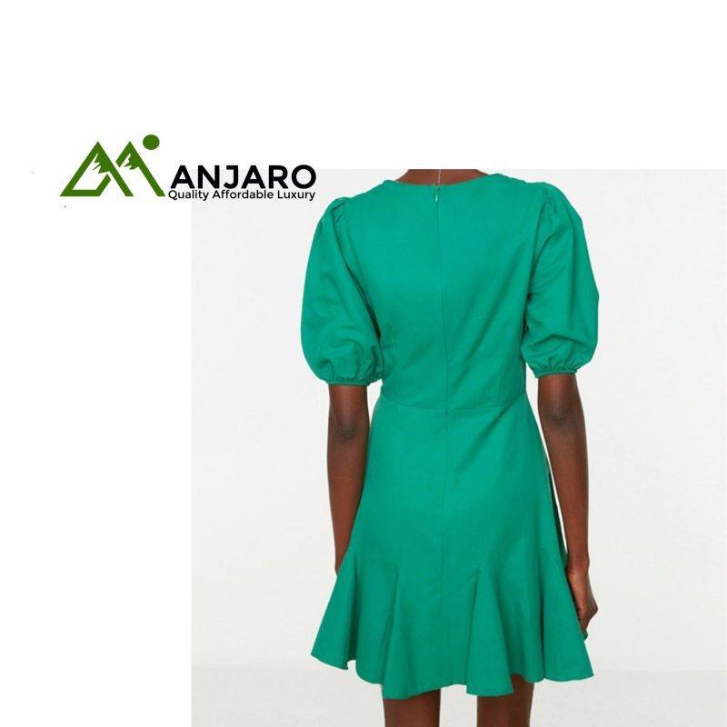 Unleash effortless charm with the Green Collar Detailed Poplin Dress — a mini-length stunner designed for the fashion-forward. Made from a breathable cotton-polyester blend, this dress features a stylish V-neckline, soft balloon sleeves, and a flattering skater silhouette that cinches at the waist and flares for elegant movement. With suspenders and yarn-dyed fabric, this lightweight woven dress is perfect for parties, events, or whenever you want to make a bold yet classy statement.
