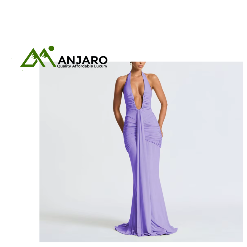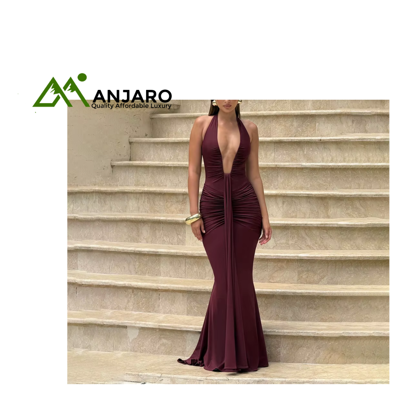 Stunning halter deep V-neck backless maxi dress designed for glamorous summer nights and beach vibes.