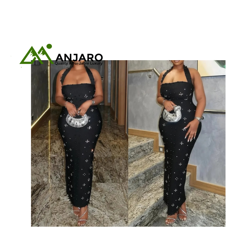 Make an unforgettable entrance in the Halter Maxi Dress Dinner Gown from Chunya. This exquisite bandage-style bodycon maxi dress combines a dramatic V-neckline, elegant lantern sleeves, and intricate hand-beaded crystal decoration for a truly luxurious look. Crafted from premium spandex and polyester, it’s eco-friendly, washable, and lightweight (200 g fabric weight), ensuring comfort without compromising style. The A-line silhouette with a natural waistline accentuates your shape while delivering a refined, vintage-inspired appeal—perfect for dinners, galas, or special occasions.