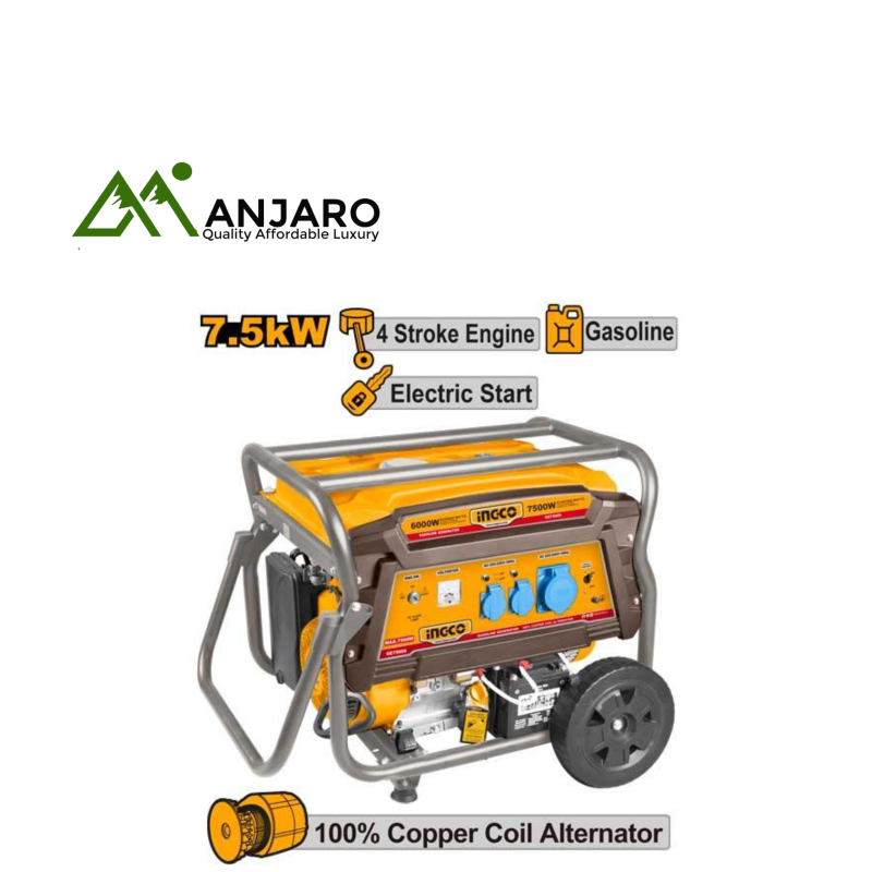 The Ingco GE-Series Gasoline Generators (Models: GE75006, GE65006, GE55003, GE35006ES) are built to deliver high-output, durable performance for homes, small businesses, and construction sites. Ranging from 3.0kW to 7.5kW, these open-frame generators feature rugged 4-stroke engines, large fuel tanks for extended runtime, and heavy-duty construction to withstand demanding environments. Designed with multiple AC outputs and either electric or recoil start options, the GE-Series provides dependable power where and when you need it. Whether it's for emergency backup, powering heavy equipment, or outdoor events, these generators get the job done efficiently.