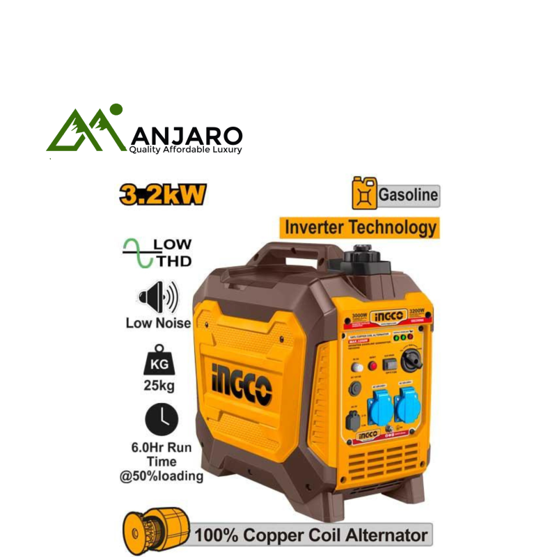 The Ingco GEI-Series Inverter Gasoline Generators (Models: GEI35006, GEI23006, GEIF55001, GEIF40001) combine advanced inverter technology with powerful 4-stroke engines to deliver stable, fuel-efficient electricity for sensitive electronics, household appliances, and outdoor equipment. These generators are designed for quiet operation and portability, making them perfect for home backup, camping, and mobile workstations. With output ranges from 2.3kW to 5.5kW, they offer flexible energy solutions for both light-duty and high-demand applications. Each model features user-friendly controls, electric or recoil start, and multiple power outlets for versatile use.