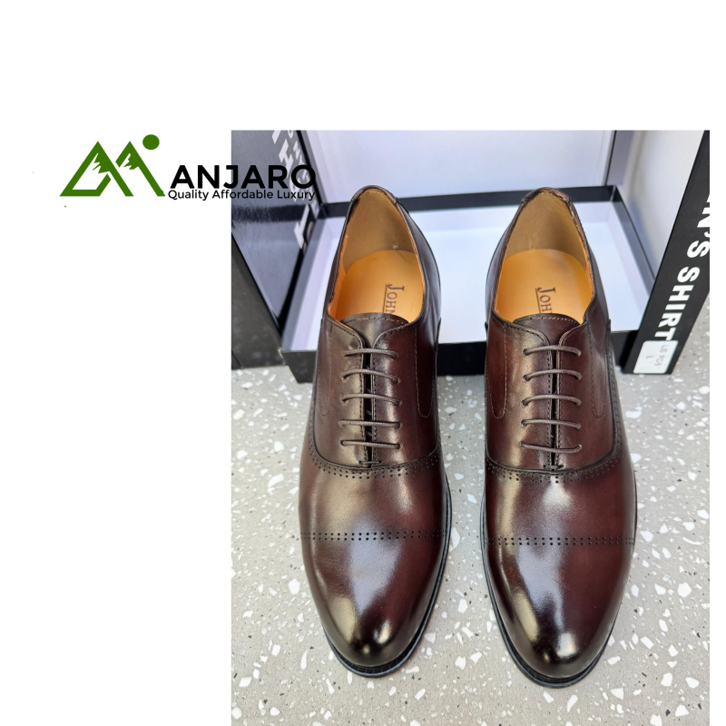 Made from high-quality leather with a deep, burnished brown finish, these shoes feature the elegant Oxford construction—a closed lacing system that provides a sleek, secure fit. The defining characteristic is the intricate brogue detailing (perforations) along the toe cap (cap-toe), vamp, and seams, adding a layer of visual interest and traditional charm. Designed for both supreme comfort and enduring style, these brogues are the definitive choice for formal events, important business meetings, and occasions where only the utmost refinement will suffice.