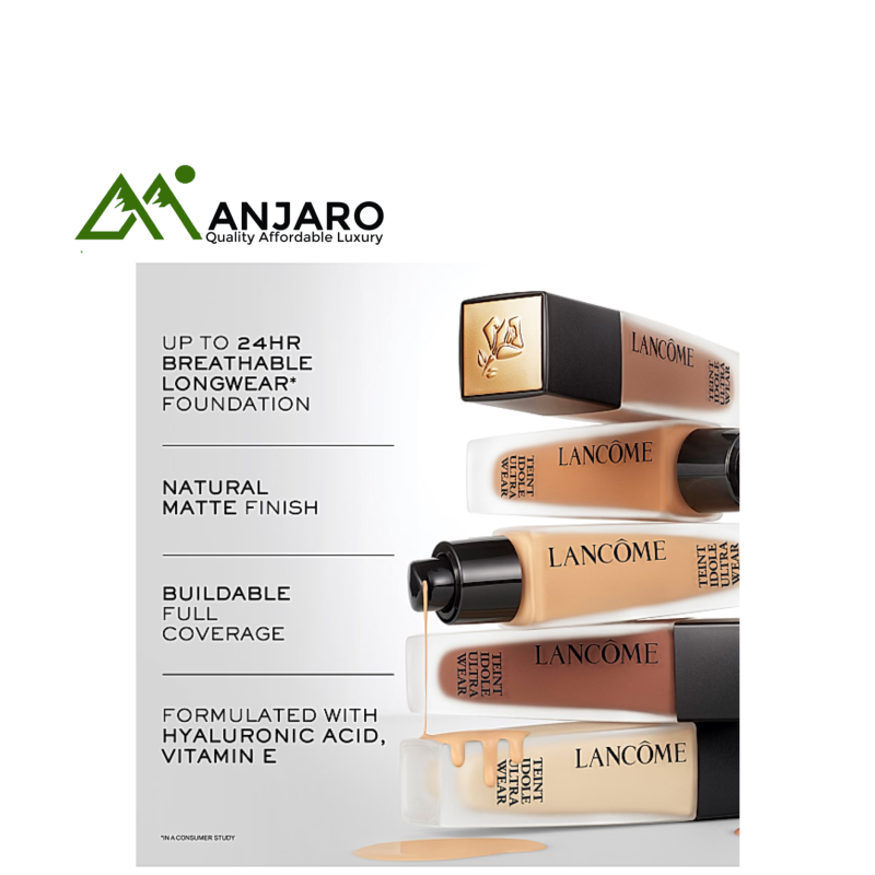 Achieve a flawless complexion with the Lancôme Teint Idole Ultra Wear 24H Foundation. This lightweight, breathable foundation offers full coverage with a natural matte finish that lasts up to 24 hours. Enriched with skin-loving ingredients like Hyaluronic Acid, Vitamin E, Moringa Seed Extract, and Prebiotics, it hydrates and nourishes the skin while providing a smooth, even tone.