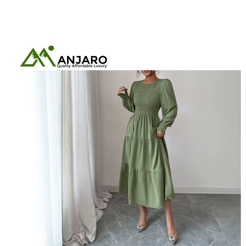 Elevate your everyday style with the Long Sleeve O-Neck Midi Ladies Dress, a versatile A-line silhouette perfect for fall and transitional seasons. Crafted from breathable 100% polyester with a soft worsted texture, this dress combines comfort with effortless elegance. Its empire waistline, pleated detail, and flared hem create a flattering look, while the practical pockets add a functional touch. Ideal for daily wear, office, or weekend outings, it’s your go-to dress for chic simplicity.