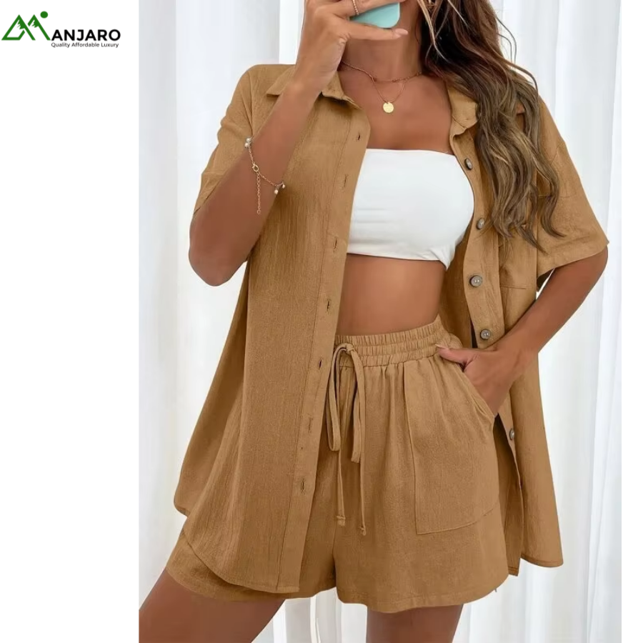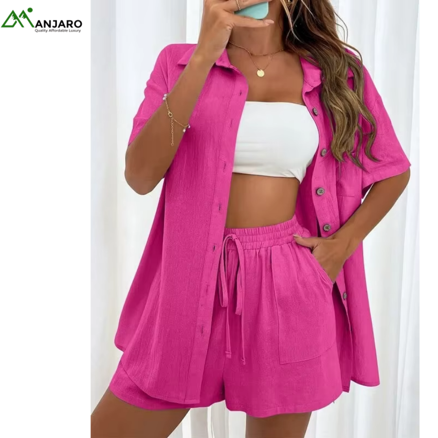 Made from a premium linen-cotton blend, this lightweight set ensures breathability and softness, perfect for hot summer days, casual outings, or holiday trips. The minimalist solid color design and practical pocket details make this outfit both functional and stylish.