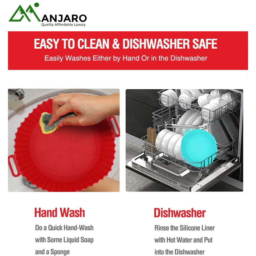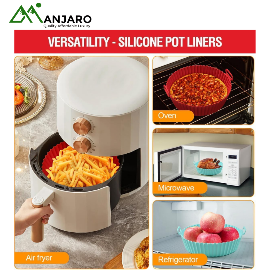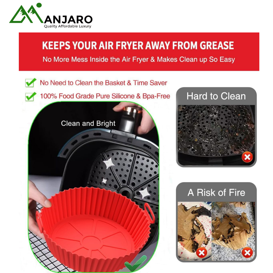 Upgrade your air frying experience with the Reusable Silicone Air Fryer Basket Liners. This product is a dynamic, fresh, and forward-thinking solution designed to simplify cleanup and promote healthier cooking. These round liners fit perfectly inside your air fryer basket, protecting it from grease, food residue, and sticky sauces, virtually eliminating the need for scrubbing.