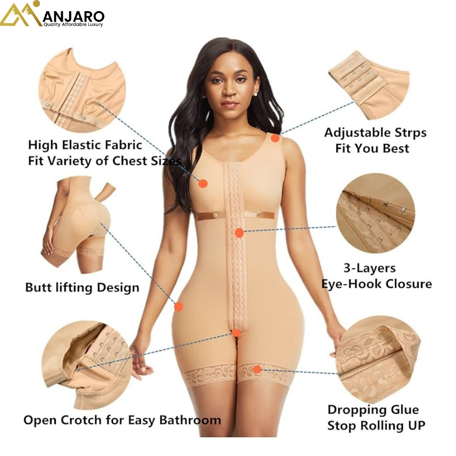The ultra-high-waisted cut provides complete 360-degree coverage from the mid-thigh to the ribcage, effectively smoothing the back and eliminating "muffin tops". To ensure a seamless experience, the garment is finished with a premium floral lace hem featuring a non-slip grip to prevent rolling. Whether for postpartum recovery, special events, or everyday executive confidence, this shaper is a cornerstone of Manjaro’s Quality Affordable Luxury collection.