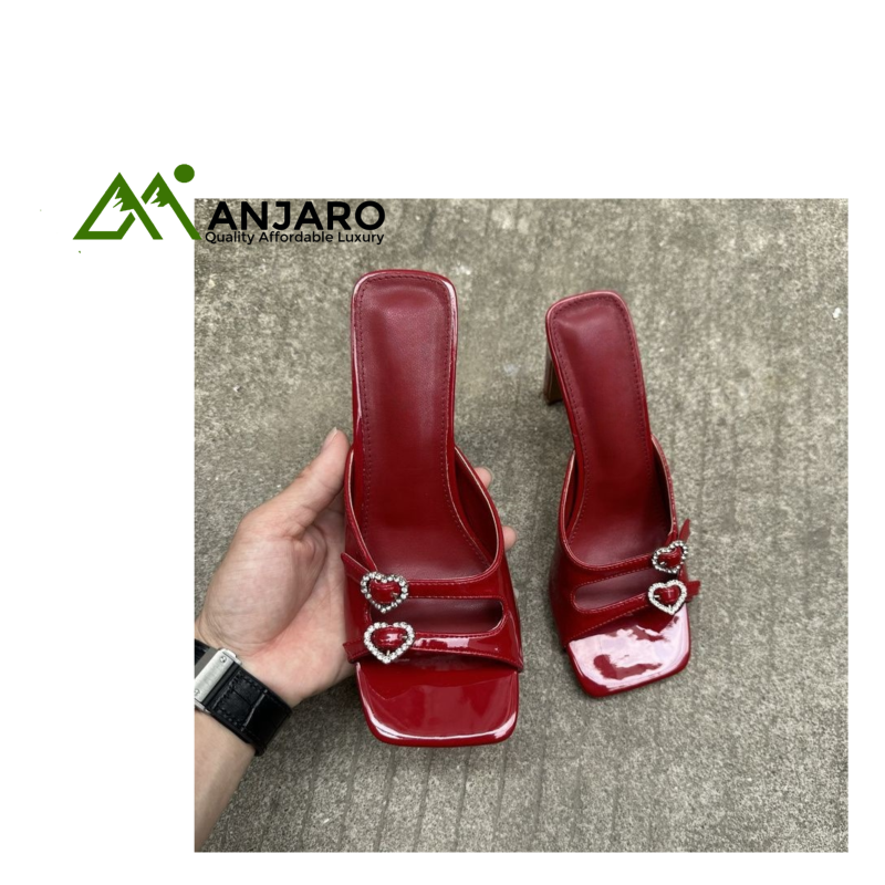 Step into bold elegance with the Square Toe Slide Sandals featuring a sparkling heart crystal ankle strap. Designed with a premium PU and microfiber leather upper, these sandals merge vintage charm with modern sophistication. Their ultra-high heel (5"+) and dual heel options (thick or thin) create a stunning silhouette perfect for weddings, outdoor events, and statement looks. The breathable, lightweight construction and PU/rubber outsole provide comfort, abrasion resistance, and durability for year-round wear. Whether styled as sexy lace-up mules or classy ankle-wrap heels, these sandals deliver glamour at every step.