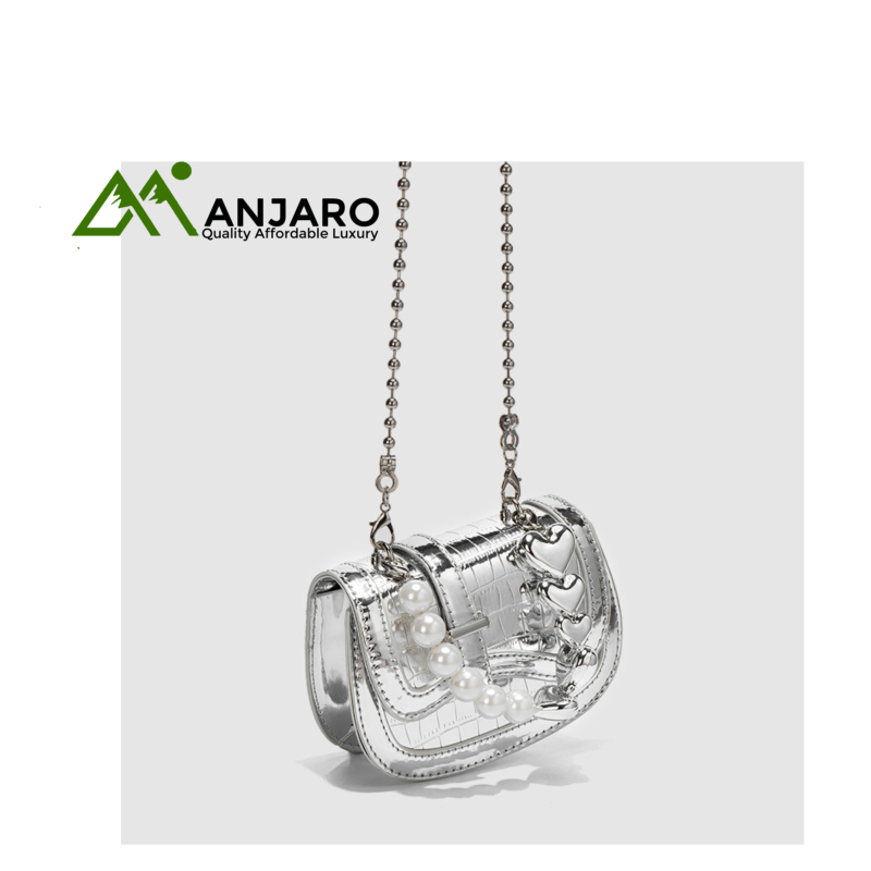 Add a touch of sophistication to your look with the Summer Texture Pearl Chain Mini Silver Handbag. This compact crossbody is crafted from durable canvas with a sleek, silver-toned finish and a delicate pearl chain strap for an elegant, modern edge. Perfect for daily wear, brunch, or evening events, it combines lightweight convenience with fashion-forward design.