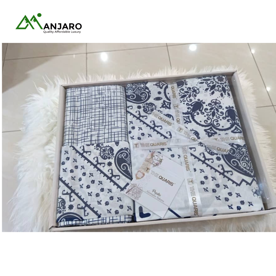 Redefine comfort and class with The Quaris Premium Cotton Bed Sheet Set, beautifully crafted to transform your bedroom into a space of modern elegance. Designed in a blue and gold geometric pattern, this set adds a refined touch that blends seamlessly with any décor style — from minimalist to luxury chic.