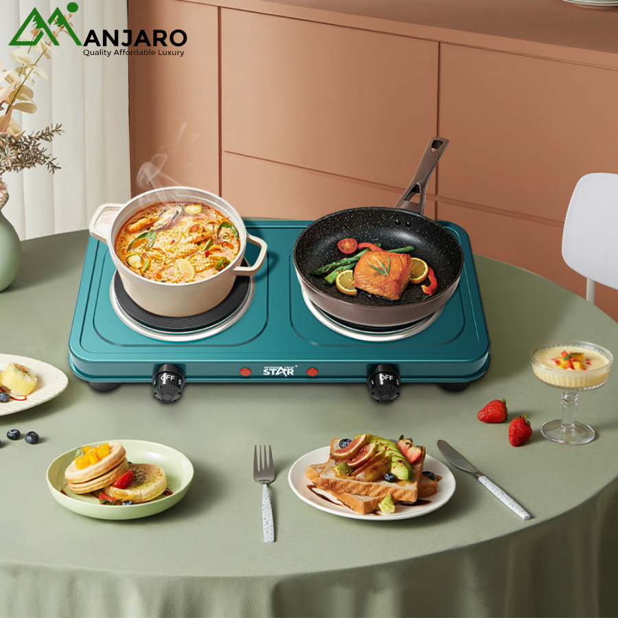 Design: Features a Double Hot Plate (two burners) allowing for simultaneous cooking.