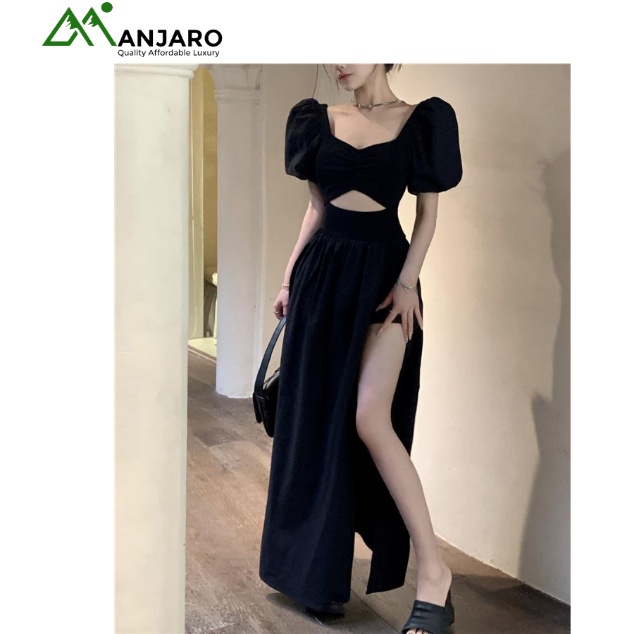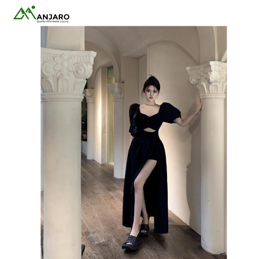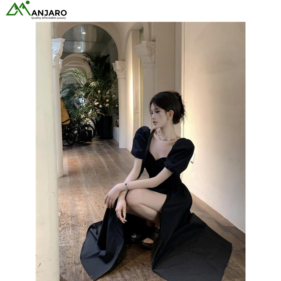 Elevate your wardrobe with timeless Parisian charm in this French-style black dress set — a modern expression of elegance and confidence. Designed with a flattering square neckline and soft puff sleeves, this waist-slimming slit skirt enhances your silhouette while offering everyday comfort. Crafted from premium polyester fiber, it delivers a graceful drape and wrinkle resistance, making it the perfect choice for work, dates, or evening occasions. The mid-length slit adds allure and sophistication, blending classic femininity with contemporary edge.