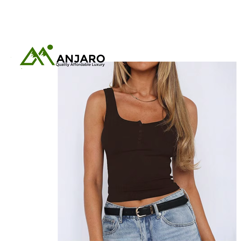 Trendy halter crop tank top with square collar – perfect for casual summer styling.