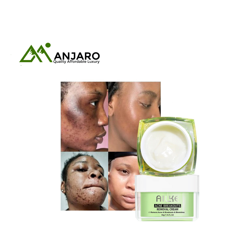 The Ailke Acne Breakouts Removal Cream is a targeted night-time skincare treatment designed to combat pimples, whiteheads, blemishes, and acne scars. Powered by salicylic acid, vitamin C, niacinamide, and hyaluronic acid, this formula penetrates deep into pores to unclog impurities, reduce inflammation, and prevent future breakouts. Enriched with aloe vera, collagen, kojic acid, and nourishing plant extracts, it also works to lighten dark spots, smooth skin texture, and restore a healthy glow. Ideal for normal skin, this cream provides anti-aging, moisturizing, and whitening benefits for a clearer, more radiant complexion.