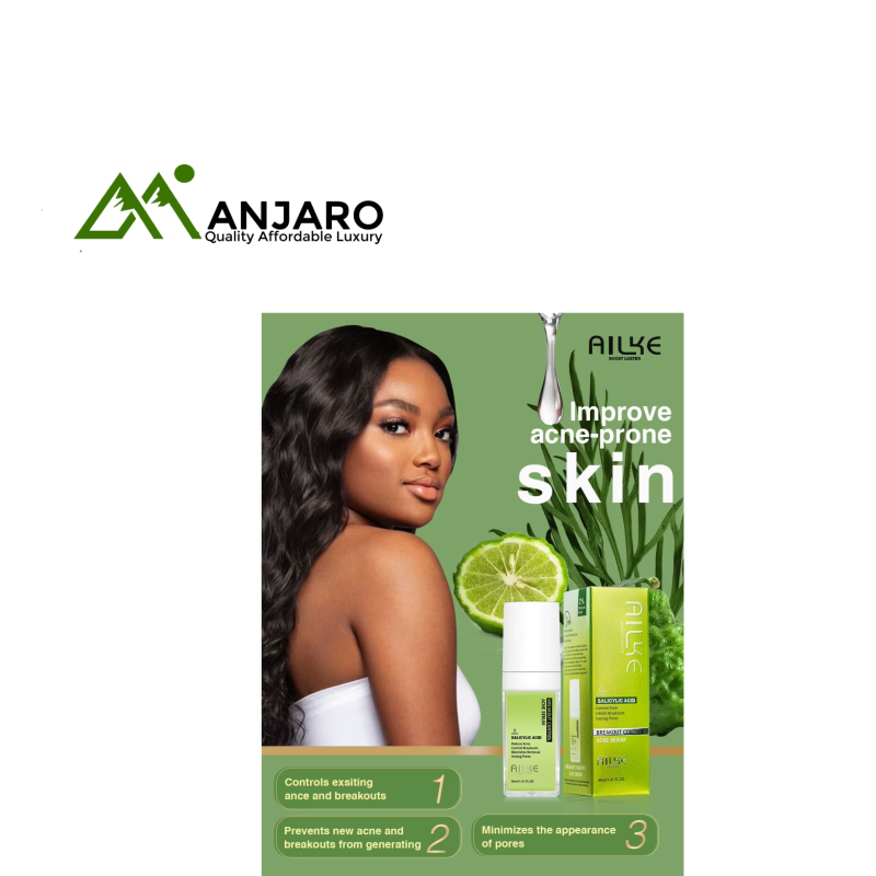 The Ailke Breakout Control Acne Serum is formulated to combat stubborn acne, unclog pores, and prevent new breakouts. Enriched with salicylic acid, hyaluronic acid, niacinamide, and vitamin C, this serum not only targets acne but also promotes a clearer, smoother, and healthier-looking complexion. Its lightweight liquid formula penetrates deeply to hydrate, firm, and nourish the skin while reducing blemishes and restoring balance. Suitable for daily home use, this serum is designed for the face, neck, hands, and body, making it a versatile solution for comprehensive skincare.