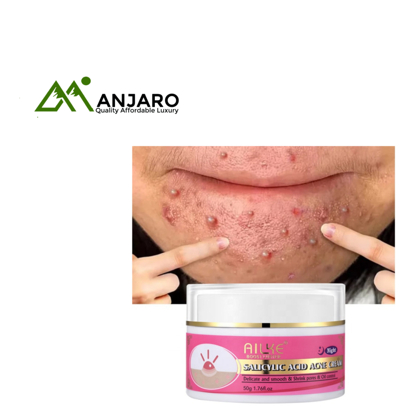 The AILKE Diamond Anti-Acne Face Cream is a powerful night treatment formulated to target pimples, excess oil, and uneven skin tone. Enriched with Salicylic Acid, Vitamin C, Vitamin E, Glycerin, and Vitamin B5, this cream works overnight to reduce acne, minimize pores, and brighten the skin for a smoother, clearer complexion.