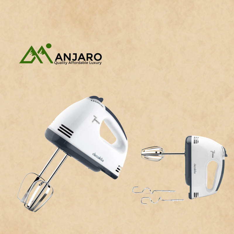 The Decakila Hand Mixer KEMX016W is a compact and efficient kitchen tool, perfect for everyday baking and mixing tasks. With a 300W motor and five adjustable speed settings, it offers precision control for whipping, beating, and mixing ingredients effortlessly. The mixer comes with durable stainless steel beaters and dough hooks, making it versatile for everything from fluffy cakes to dense doughs. Designed with a lightweight build and ergonomic handle, this hand mixer ensures comfort during extended use, while its easy-eject button simplifies cleanup.