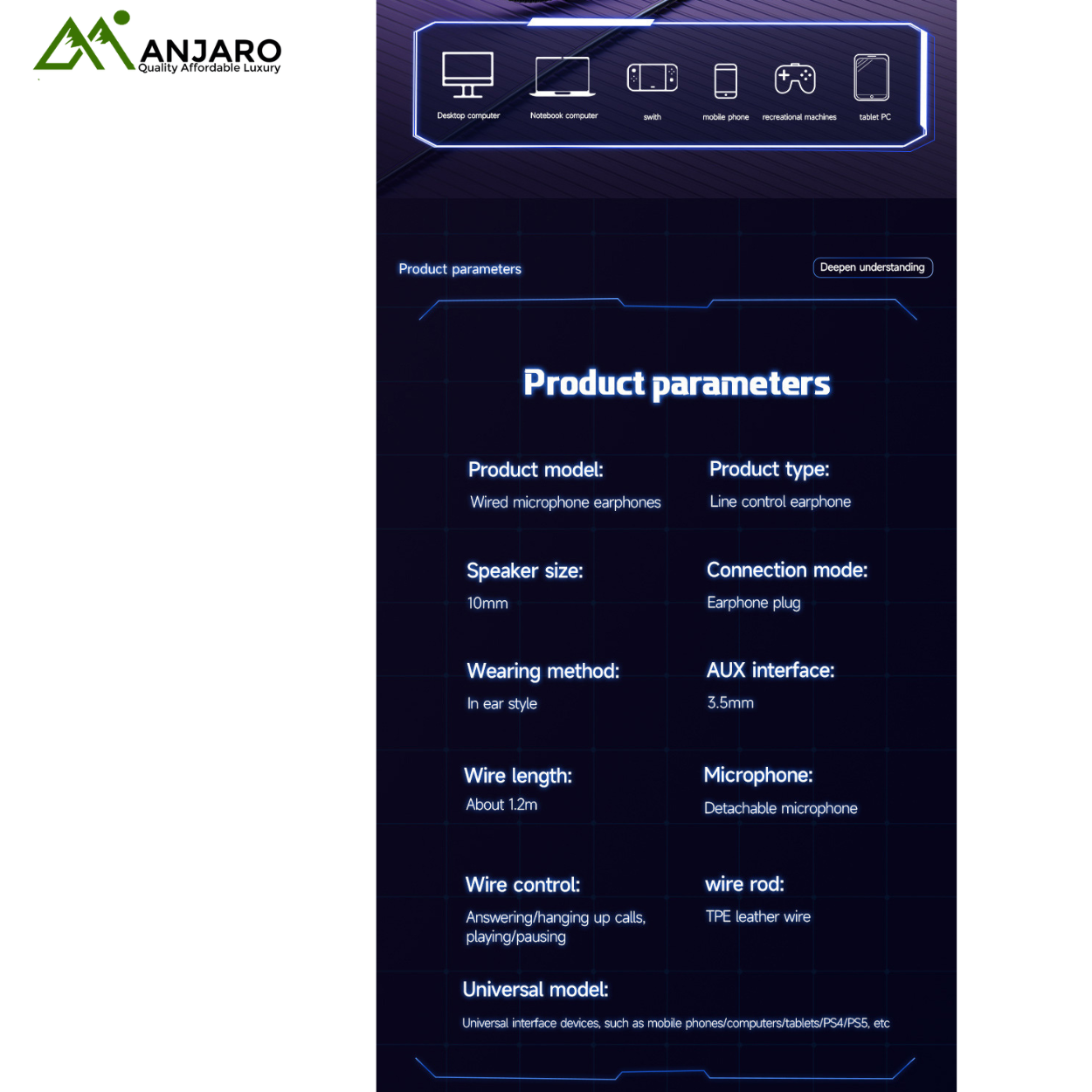 Designed with a durable TPE cable, ergonomic silicone earplugs, and an L-curved 3.5mm plug, it ensures strong connection stability and long-lasting usage without cable breakage during intense play. The built-in microphone supports clear voice transmission, making it ideal for gaming chats, calls, and livestream interactions. With a frequency response of 20HK–20KHZ and minimal 1% distortion, this HiFi-grade headset offers immersive sound tailored for mobile gaming, music streaming, and everyday listening.