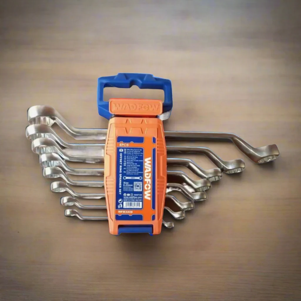 Designed for mechanics who demand strength and precision, the Wadfow WFR3208 Offset Ring Spanner Set offers 8 essential sizes for tackling tight bolts in hard-to-reach areas. Each spanner features a 12-point ring and a 45° offset angle for maximum torque without sacrificing comfort. Crafted from chrome vanadium steel with a polished anti-corrosion finish, this set guarantees long-lasting performance whether in the garage, workshop, or field. An ideal addition to any toolkit, it comes packaged in a durable roll-up pouch for convenience and organization.