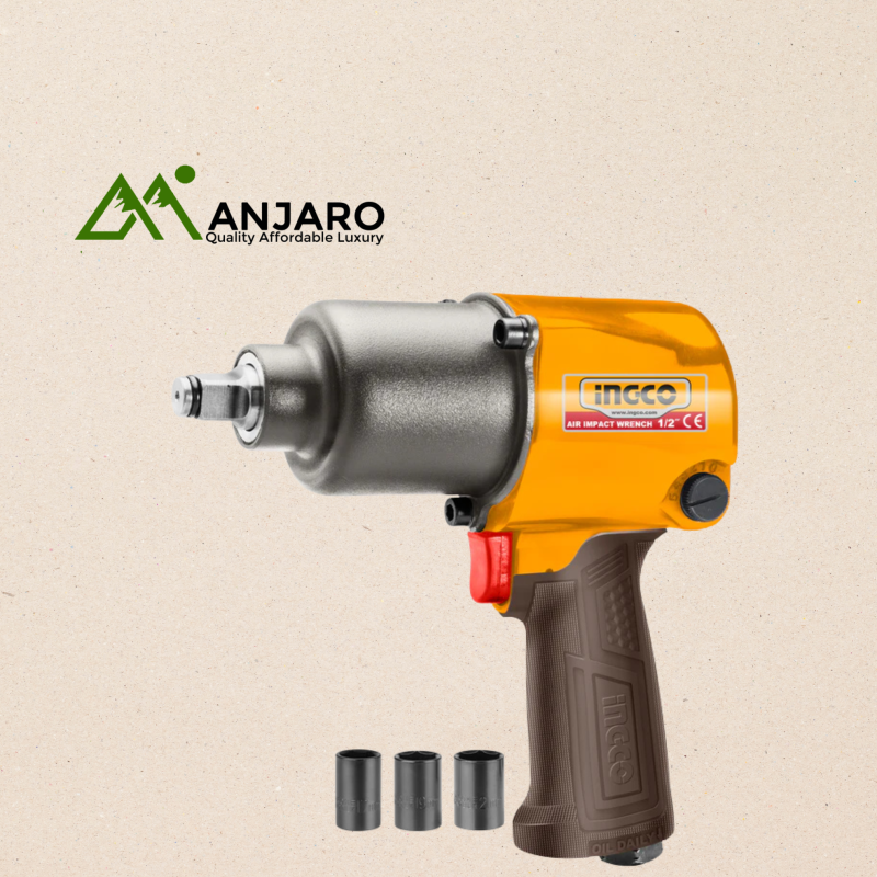 The Ingco AIW12562 Air Impact Wrench delivers powerful, efficient fastening with a robust twin hammer mechanism and a maximum torque of 610Nm (450 ft-lb). Designed for automotive, mechanical, and heavy-duty workshop use, it features a 12.5mm (1/2") square drive and a no-load speed of 7000 RPM, providing fast, consistent performance for tightening and loosening tough bolts. It comes complete with three socket sizes (17mm, 19mm, 21mm) and multiple connectors (Europe, USA, Nitto, Italy) for versatile use across air systems. Compact at 187mm in length and lightweight at 2.6kg, this wrench ensures user comfort while delivering the power needed for demanding tasks.