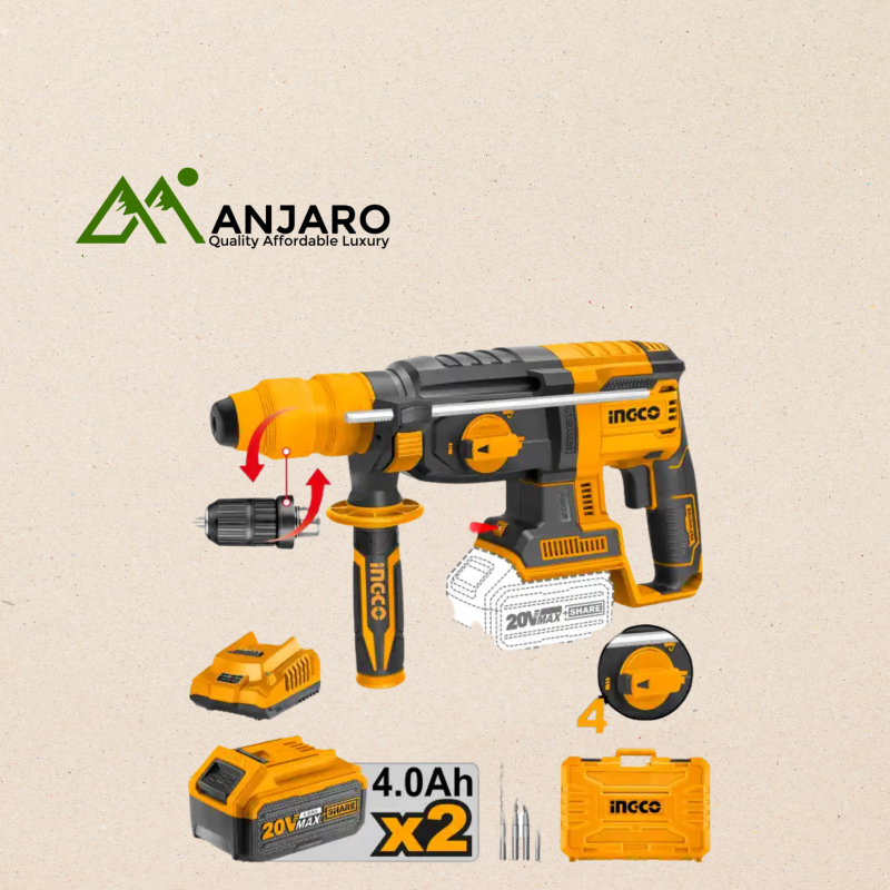 The Ingco CRHLI202289 Cordless Rotary Hammer delivers powerful and precise drilling and chiselling in concrete, brick, and masonry without the limitations of cords. Operating on a robust 20V system, this rotary hammer is designed for professionals and DIY users needing mobility on job sites while ensuring consistent performance in demanding conditions. It features variable speed control for precision work, an ergonomic anti-vibration handle for comfortable extended use, and a lightweight design that enhances maneuverability in tight spaces. Whether you’re installing anchors, chiselling tiles, or working on renovation projects, this cordless rotary hammer ensures efficiency and power wherever your tasks take you.