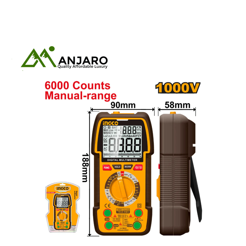 The Ingco DM310002 and DM360011 Digital Multimeters are reliable, compact diagnostic tools designed for accurate electrical measurements in residential, commercial, and industrial environments. These multimeters are ideal for electricians, technicians, and DIYers who need to measure voltage, current, resistance, continuity, and more. Each unit features a clear digital display, easy-to-use dial selection, and durable casing for long-term use. Whether you're troubleshooting household circuits or testing automotive systems, this pair of Ingco digital multimeters delivers precise readings and dependable performance.
