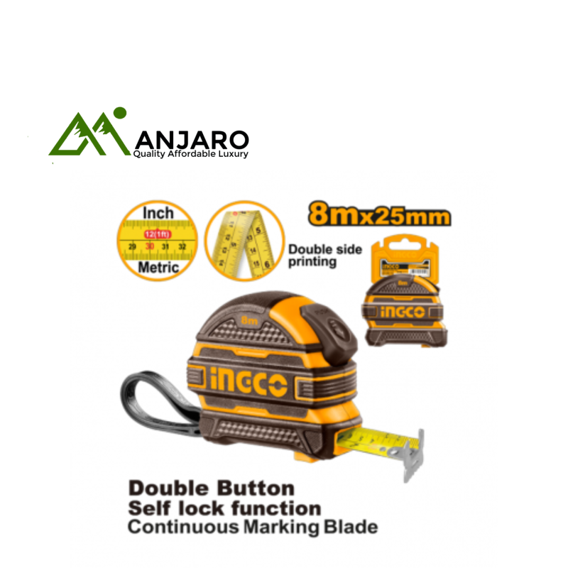 The Ingco HSMT series steel measuring tapes are engineered for precision, strength, and ease of use on any project site. Featuring models HSMT08825 (8m x 25mm), HSMT081025 (10m x 25mm), and HSMT80832 (8m x 32mm), these tapes are made from high-quality steel with clear, fade-resistant markings for accurate measurements. Their durable ABS plastic case with a soft grip ensures a secure, comfortable hold, while the auto-lock and smooth rewind functions make operation seamless. Ideal for construction, carpentry, and general-purpose measuring, the HSMT series delivers accuracy and efficiency in every use.