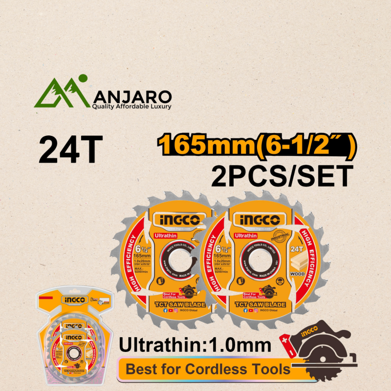 The Ingco TSB1653 Ultra-Thin TCT Saw Blade Set is designed for clean, precise, and fast cuts in wood and composite materials, making it an essential addition for woodworkers and contractors seeking efficient performance. With a 165mm blade diameter and ultra-thin kerf, these blades reduce material waste while ensuring smooth, accurate cuts with less strain on your saw. Featuring high-quality tungsten carbide-tipped teeth, this saw blade set delivers long-lasting sharpness and durability for repeated use on site or in your workshop. Ideal for circular saws, it provides versatility and reliability for various cutting applications.