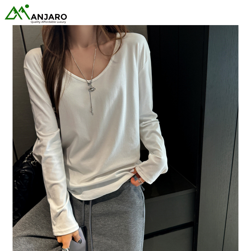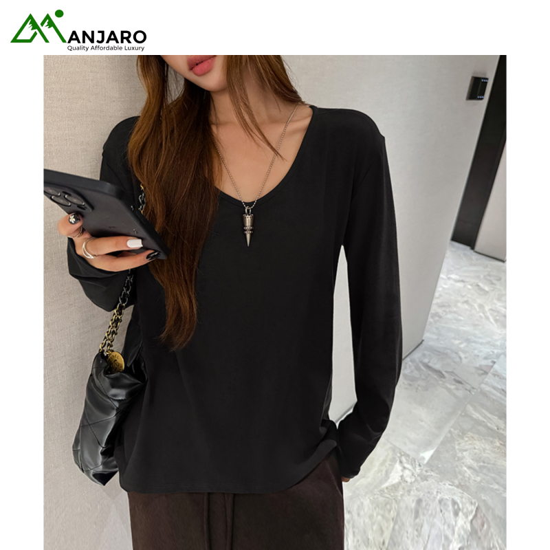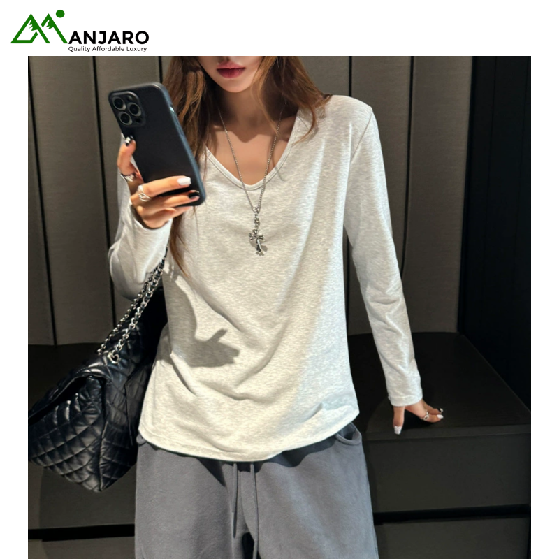 Designed in a loose, mid-length cut, it drapes beautifully on the body, providing a flattering silhouette without clinging. The V-neckline enhances the neckline subtly, adding a feminine edge to its relaxed, minimalist vibe. Its long sleeves and smooth stitching make it perfect for layering under jackets or pairing with jeans, skirts, or trousers for everyday wear.