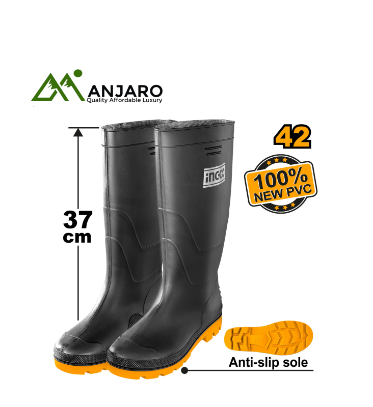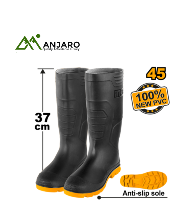 The Ingco SSH092LYB rain boots are engineered for full waterproof protection in harsh, wet, and muddy conditions. Made from high-quality PVC, these boots keep your feet dry and secure while offering resistance to slips and abrasions. Each pair is equipped with a rugged outsole for excellent grip, making them ideal for industrial sites, farms, or rainy-day tasks. Designed with comfort and durability in mind, the SSH092LYB series is available in sizes 39 to 46, ensuring a snug, protective fit for every worker.