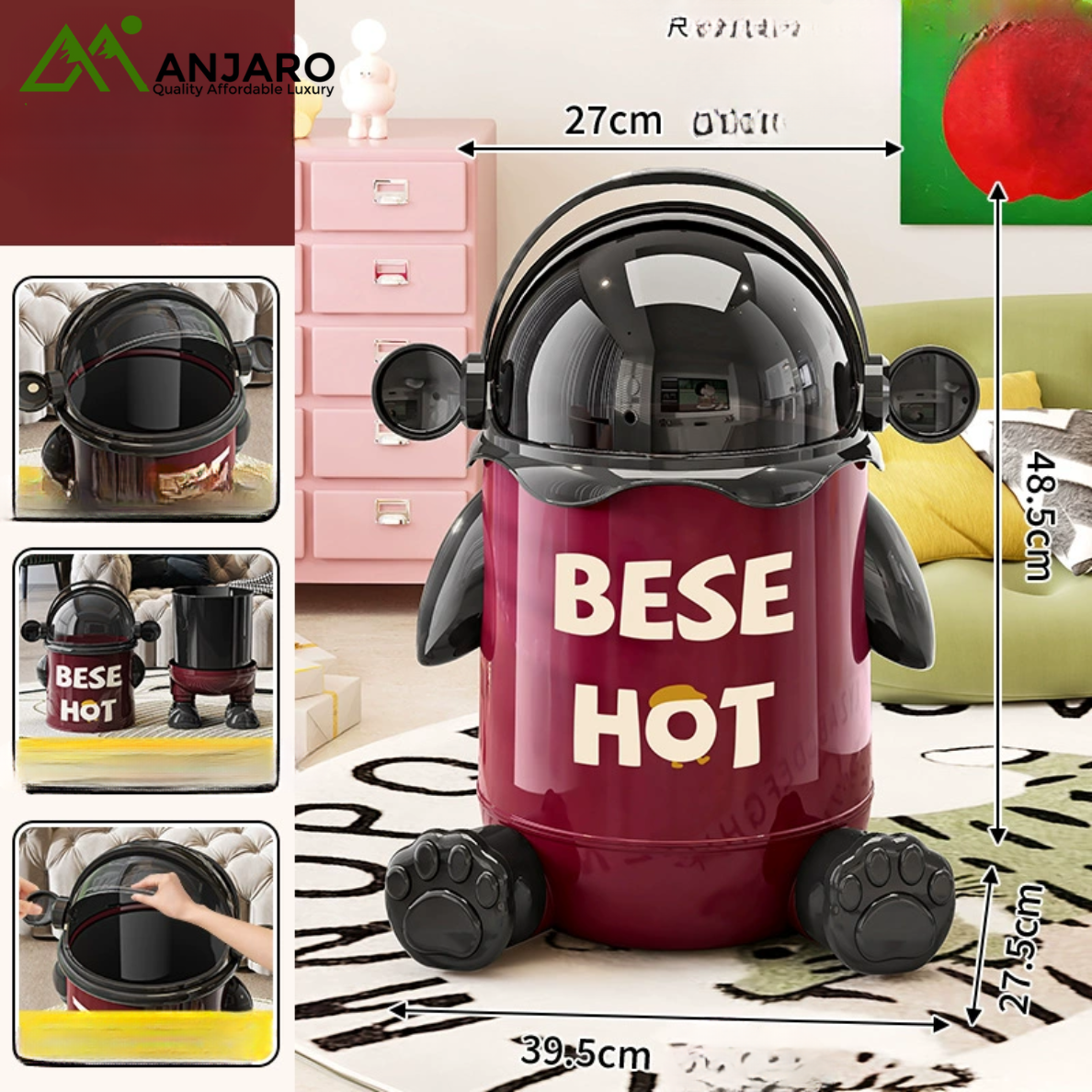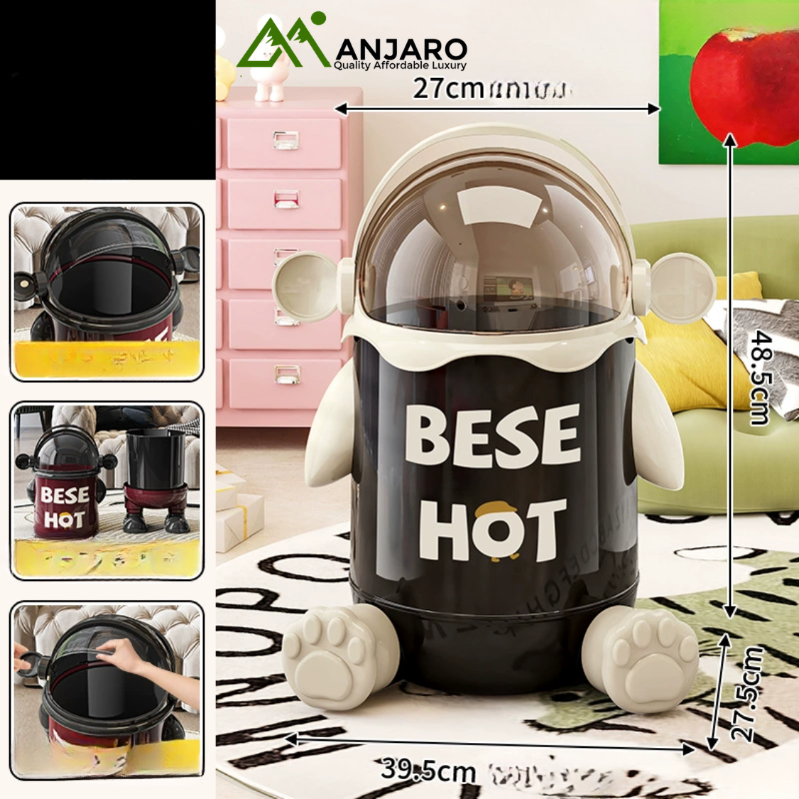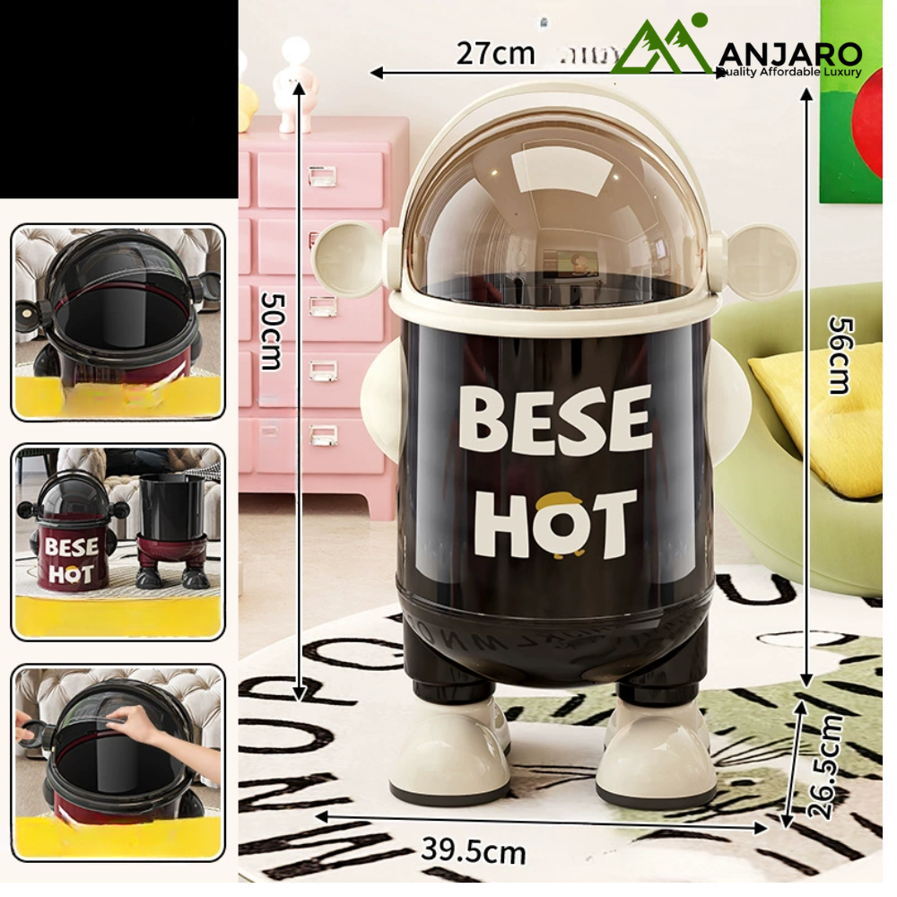 Add a touch of creativity and sophistication to your home with this space-themed trash can. Crafted from durable PP material by A Corner of a Mountain, it combines modern aesthetics with practical functionality. The swing lid ensures easy disposal while keeping odors contained, making it ideal for kitchens, bedrooms, bathrooms, and living rooms.