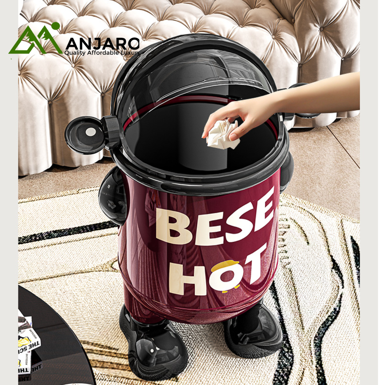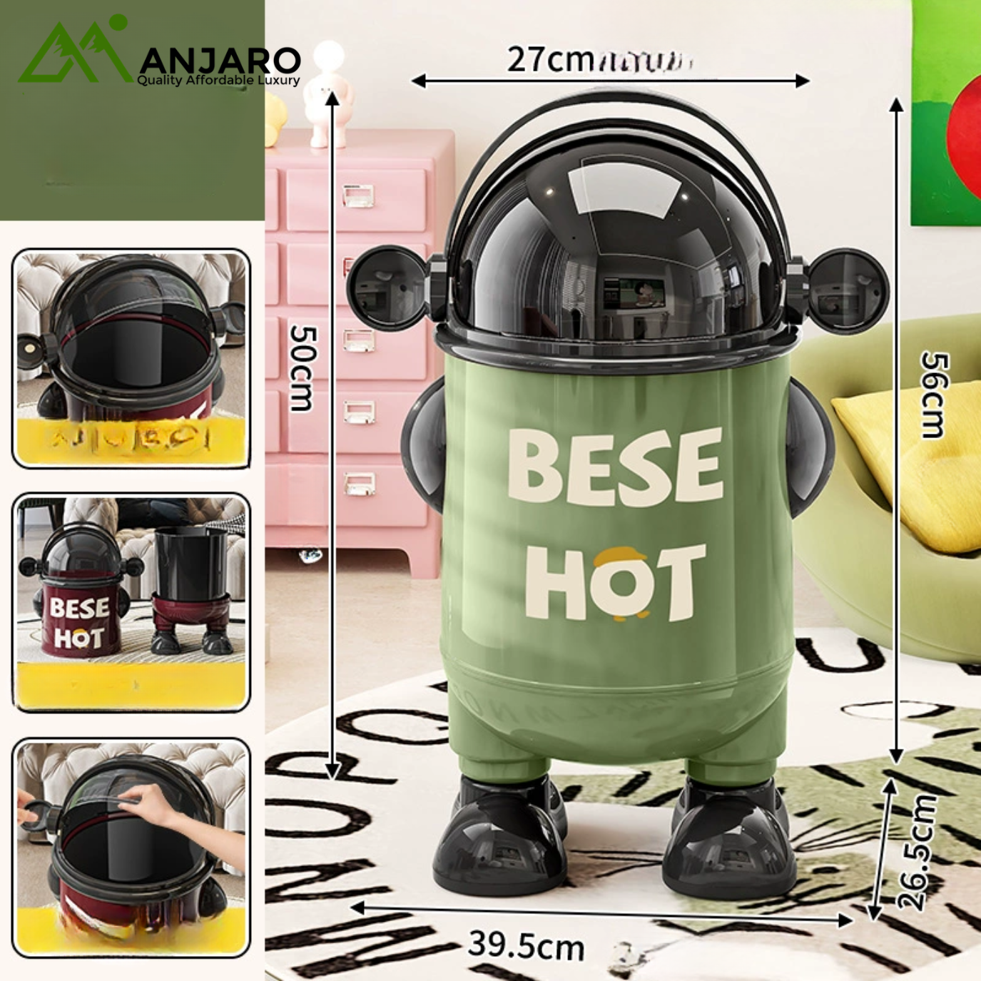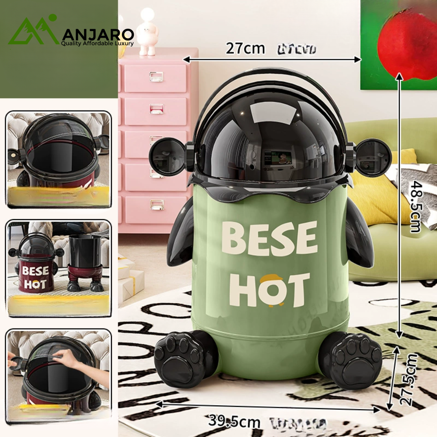Add a touch of creativity and sophistication to your home with this space-themed trash can. Crafted from durable PP material by A Corner of a Mountain, it combines modern aesthetics with practical functionality. The swing lid ensures easy disposal while keeping odors contained, making it ideal for kitchens, bedrooms, bathrooms, and living rooms.