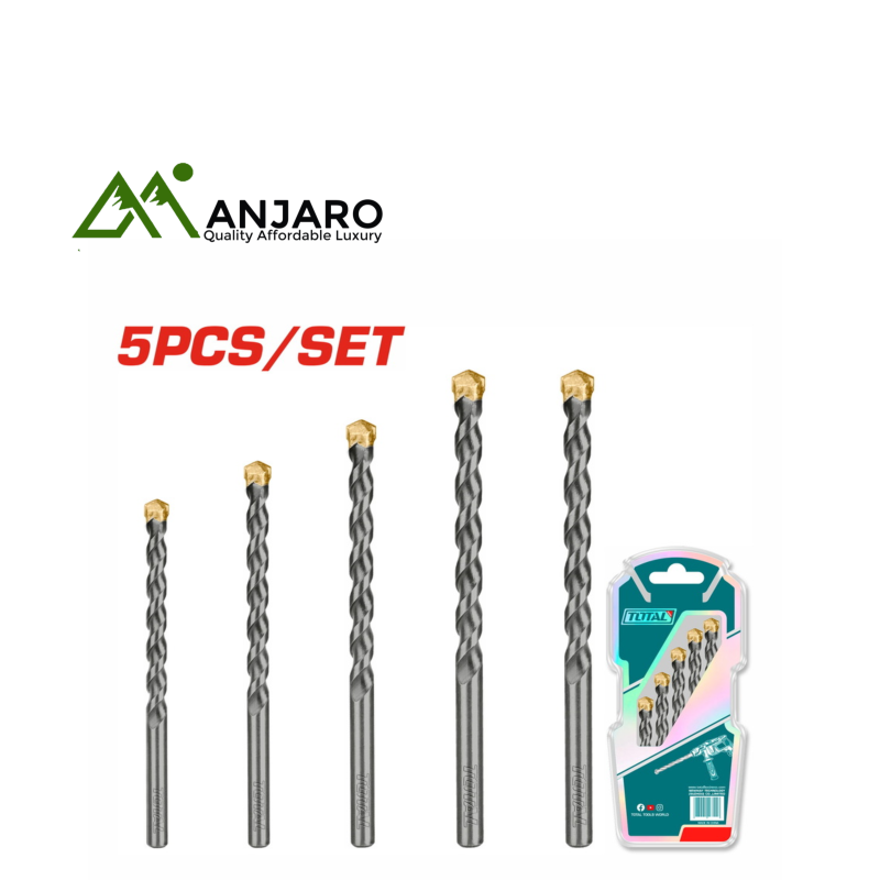 Power through concrete, brick, and stone with the Total TACSD5055 5 Pcs Masonry Drill Bits Set. Built with durable tungsten carbide tips and a rugged spiral design, this set is ideal for professionals and DIYers needing reliable performance on masonry surfaces. Designed for use with impact and rotary drills, it offers clean, controlled drilling even in tough materials.
