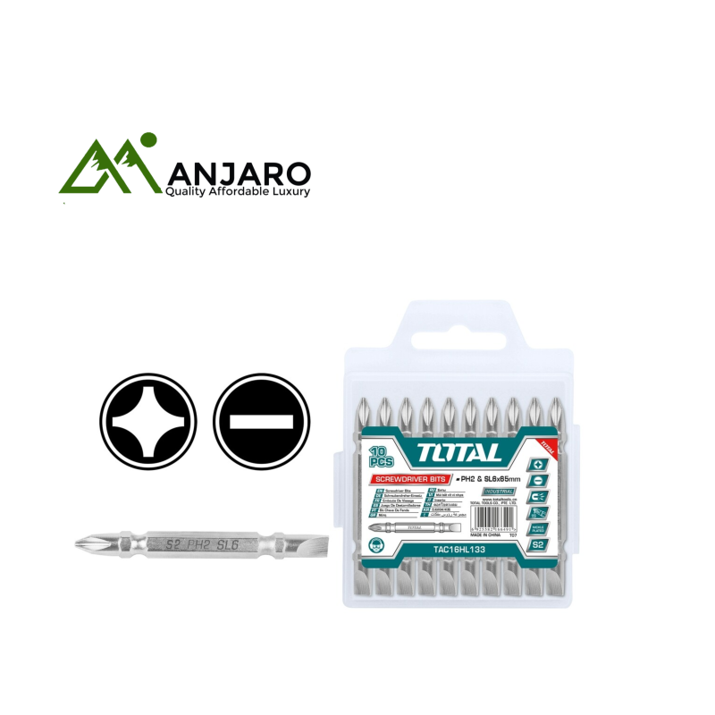 The Total TAC16HL133 Screwdriver Bits are designed for precise and powerful fastening, ideal for both professional tradesmen and DIY enthusiasts. Each bit features a 65mm Hex head, crafted from premium S2 steel to ensure durability, strength, and resistance to wear even under heavy use.