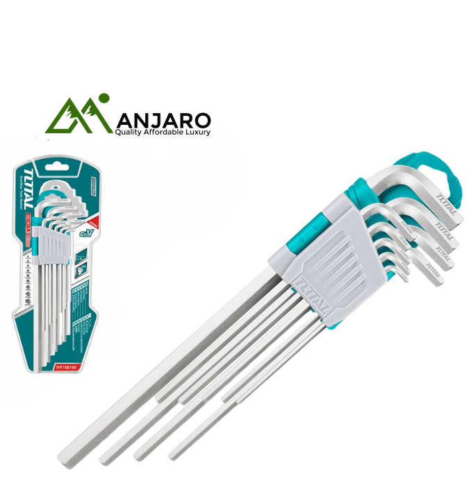 The Total THT106192 Hex Key Set is a must-have toolkit essential for quick, accurate tightening and loosening of hex screws and bolts. Crafted from heat-treated carbon steel, this L-type Allen wrench set is perfect for furniture assembly, bicycle repairs, mechanical work, and general home maintenance. Its compact holder ensures the tools stay organized and portable, while the precision tips offer excellent grip and torque.