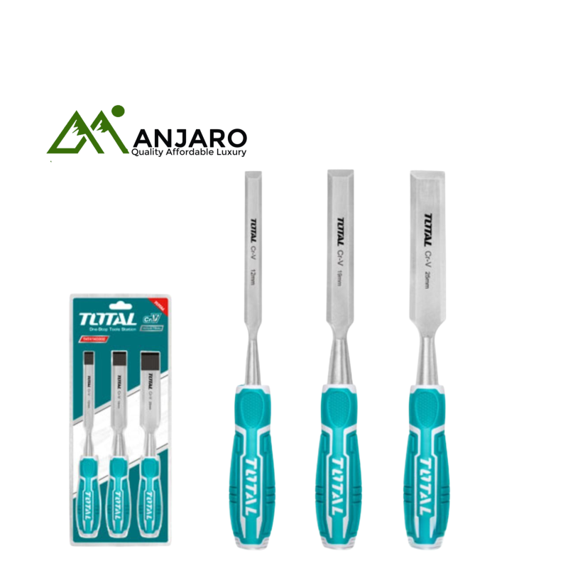 Perfect for beginners and professionals alike, the Total THT41K0302 – 3 Pcs Wood Chisel Set delivers the cutting precision and grip comfort needed for all your woodworking tasks. This compact set includes three key sizes—13mm, 19mm, and 25mm—ideal for shaping, carving, and detailing wood. Each blade is forged from durable carbon steel, maintaining a sharp edge over time, while the anti-slip ergonomic handles ensure control and reduce hand fatigue. Whether you're crafting furniture or performing fine joinery, this set gives you reliability in every stroke.