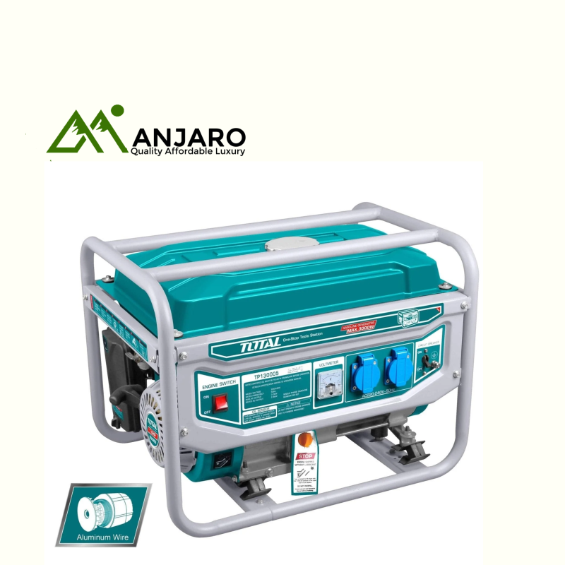 The Total TP130005-1 Gasoline Generator is a compact and efficient 3kW generator designed for home backup, light commercial use, and mobile power needs. Powered by a durable 4-stroke gasoline engine, it offers reliable performance with a user-friendly pull-start system. Its sturdy frame, efficient fuel consumption, and low-maintenance design make it ideal for everyday use during outages, outdoor activities, or powering small equipment at job sites.