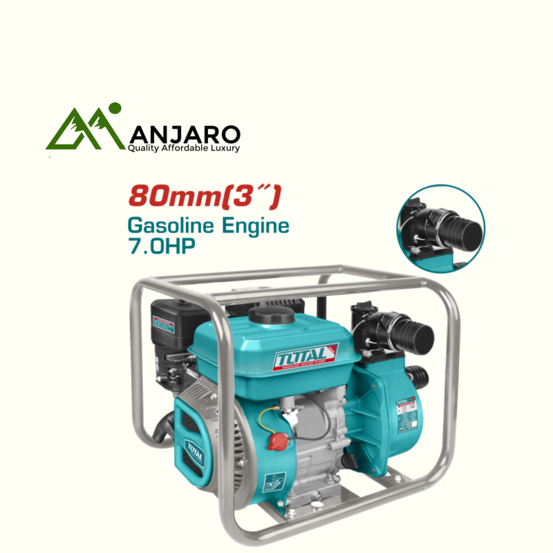 The Total TP3302 Gasoline Water Pump is a compact yet powerful 3-inch solution for efficient water transfer across agricultural fields, construction sites, and emergency drainage scenarios. Featuring a robust air-cooled, 4-stroke petrol engine, this pump combines portability with high performance, delivering strong flow rates and reliable start-up in all conditions. Its heavy-duty frame and long fuel life make it ideal for rugged use where access to electricity is limited or unavailable.