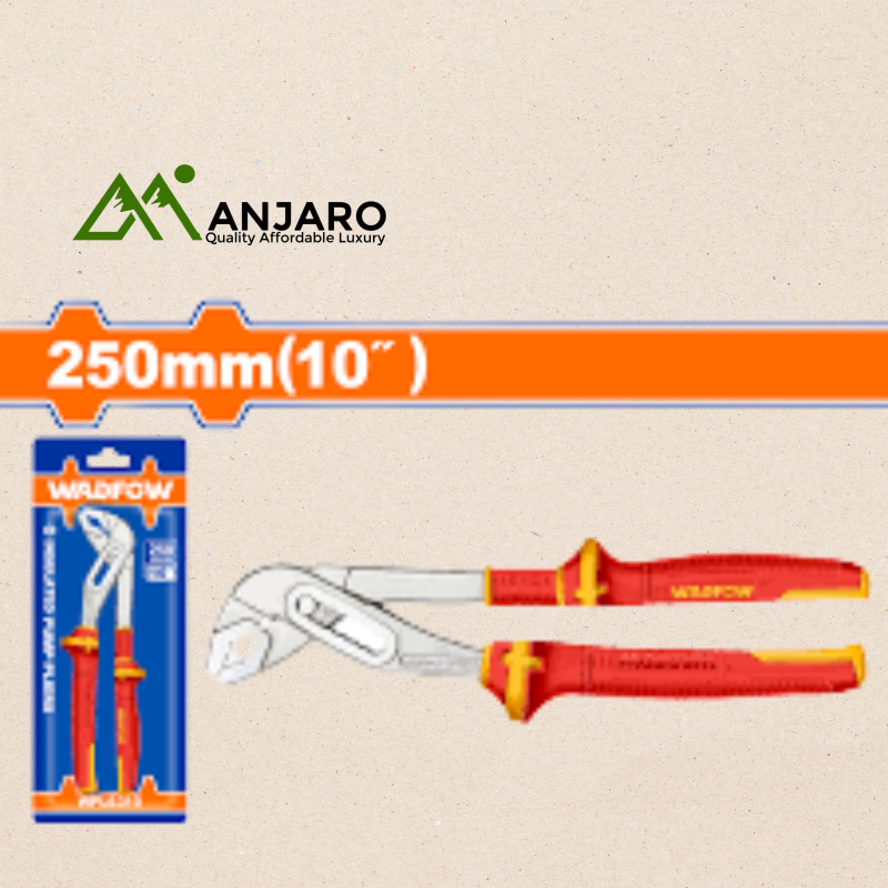 The Wadfow WPL6310 Insulated Pump Pliers are engineered for safety and durability in electrical and mechanical applications. Rated to withstand up to 1000V, these pliers are 100% tested to ensure maximum protection for professionals working in high-voltage environments. Featuring a strong 10-inch (250mm) build, they provide a maximum clamping opening of 40mm, making them ideal for gripping, twisting, and holding various materials. The insulated handle offers secure grip and enhanced safety, while the black finish with polished surfaces delivers both style and corrosion resistance.