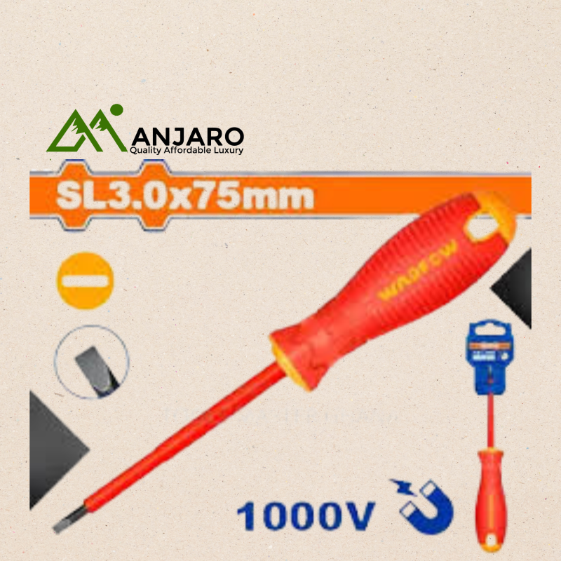 The Wadfow WSD7233 Insulated Screwdriver is engineered for safety, precision, and durability in electrical and mechanical work. With a 1000V insulation rating, it is ideal for electricians and technicians working with live circuits. The SL3.0 slotted tip is magnetized for secure screw handling, while the high-quality Cr-V steel blade with a black tip finish ensures strength and long-term performance. Designed with a soft grip handle, it offers comfort and control during extended use.
