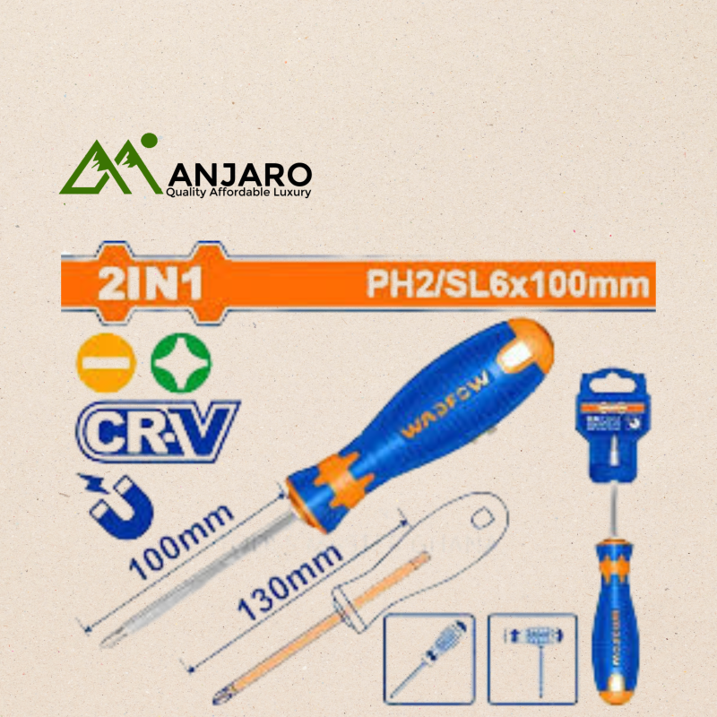 The Wadfow WSS45M3 2 in 1 Screwdriver Set is a versatile and durable hand tool designed for both professionals and DIY enthusiasts. Featuring a PH2 Phillips head and an SL6.5 slotted head, this screwdriver offers flexibility for a wide range of fastening tasks. The innovative design allows the blade to be inserted into the side of the handle, instantly converting it into a T-handle screwdriver for increased torque and control. Made from high-quality CR-V steel, it ensures long-lasting performance and resistance to wear. Compact and easy to store, it’s an essential addition to any toolkit.