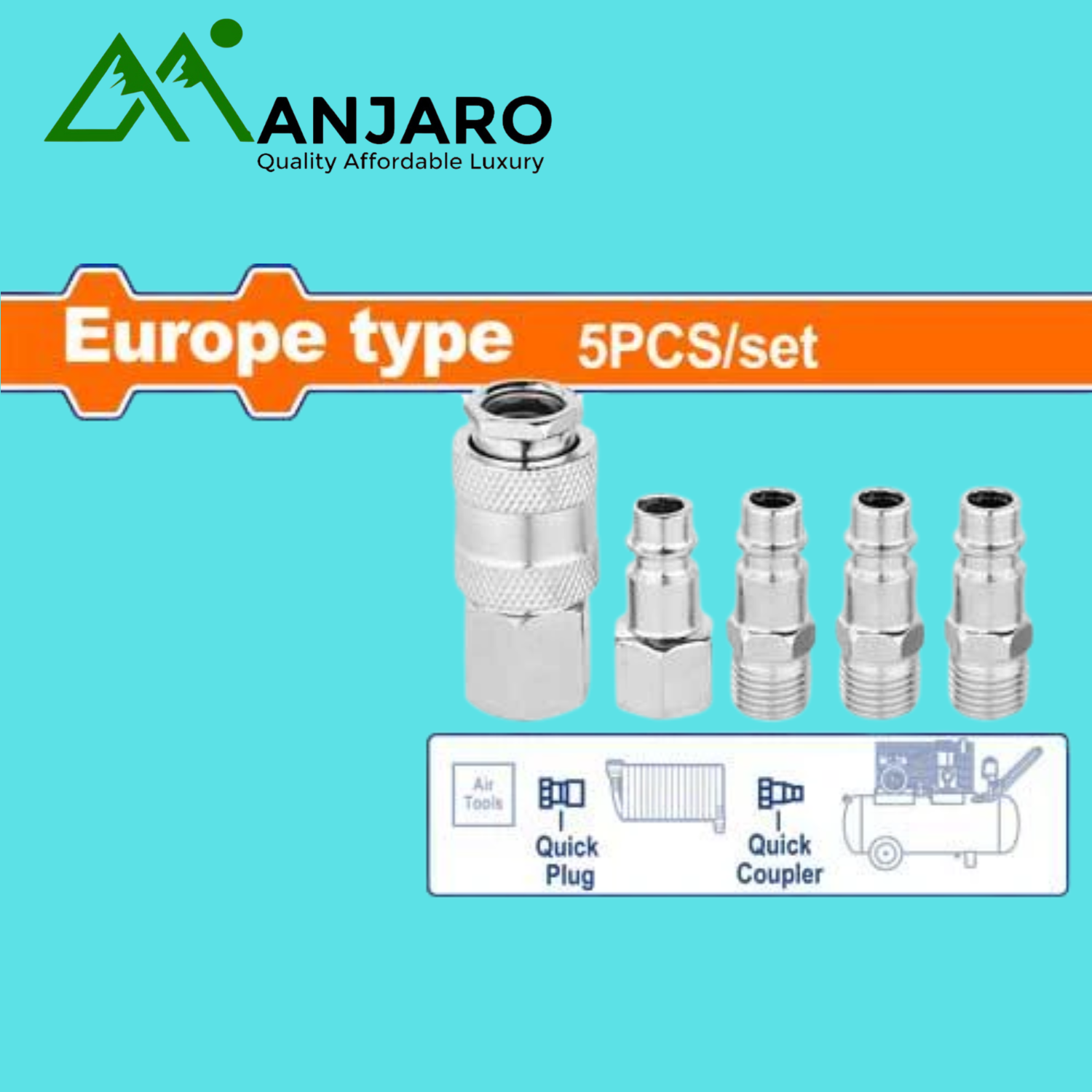 The WQP3670 5 Pcs Quick Coupler Set is a versatile solution designed for fast, secure, and leak-free air tool connections. Built to Europe-type standards, this set includes a combination of 1 female coupler, 3 male plugs, and 1 female plug, making it perfect for workshop, automotive, and industrial pneumatic systems. Each component provides stable airflow and reliable performance, allowing seamless tool changes, reducing downtime, and increasing productivity. Compact and durable, the WQP3670 set is ideal for both professionals and DIY enthusiasts who demand efficiency and versatility in air tool connectivity. Packed in a sliding card, it’s easy to store, handle, and transport.