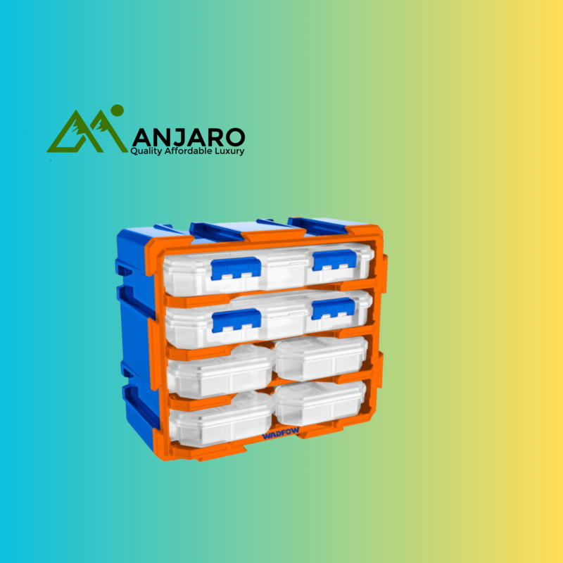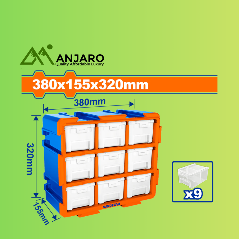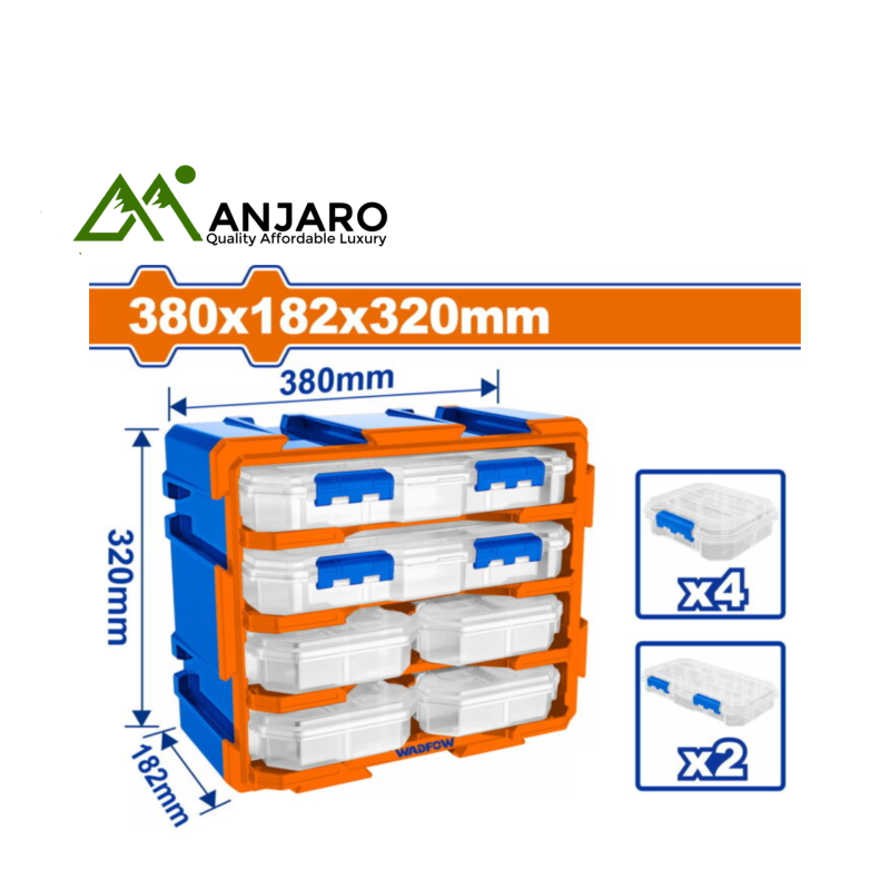 The WTB8330 model features 9 spacious bins (WTB8336) sized 165×110×80mm, ideal for storing screws, bolts, and small parts. The WTB8331 version includes 9 transparent bins (WTB8333) measuring 150×105×80mm, offering visibility for easy item identification. Meanwhile, the WTB8346 tower comes with 4 medium transparent organizers (WTB8341) and 2 large organizers (WTB8342) for larger accessories and tools.