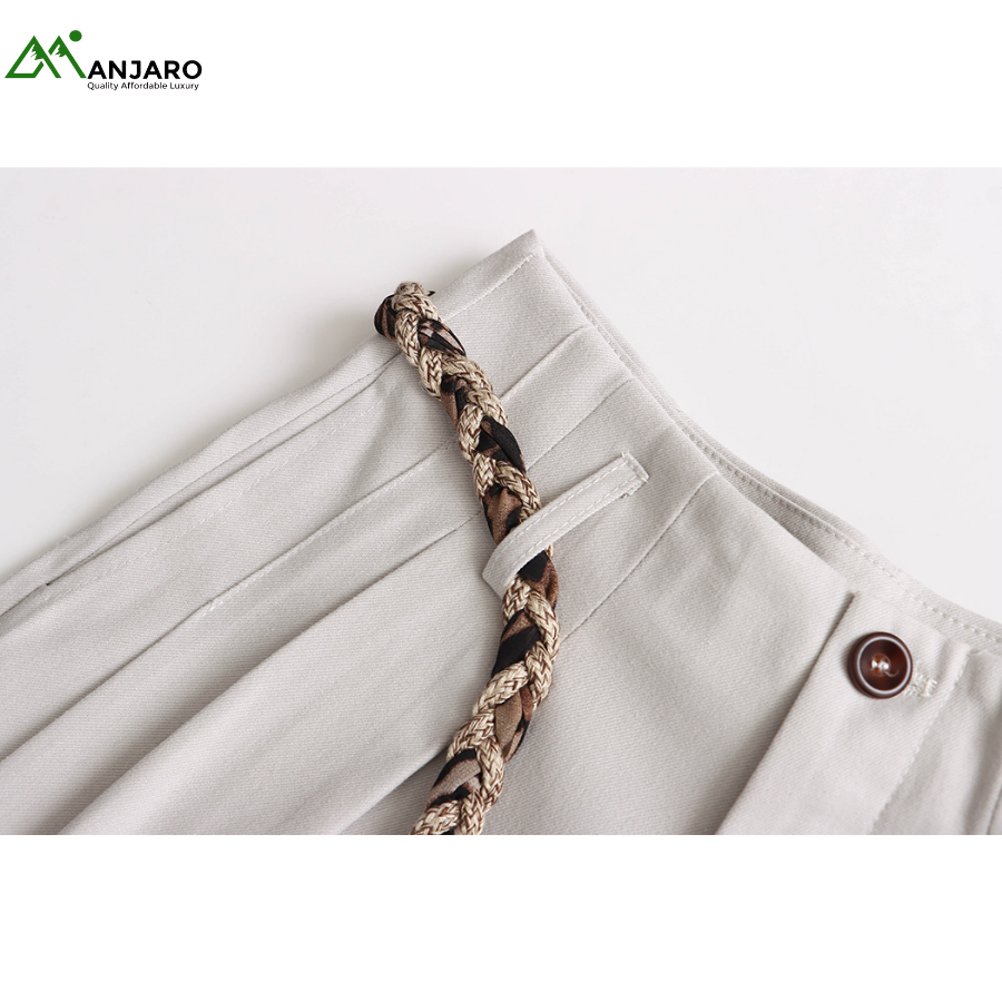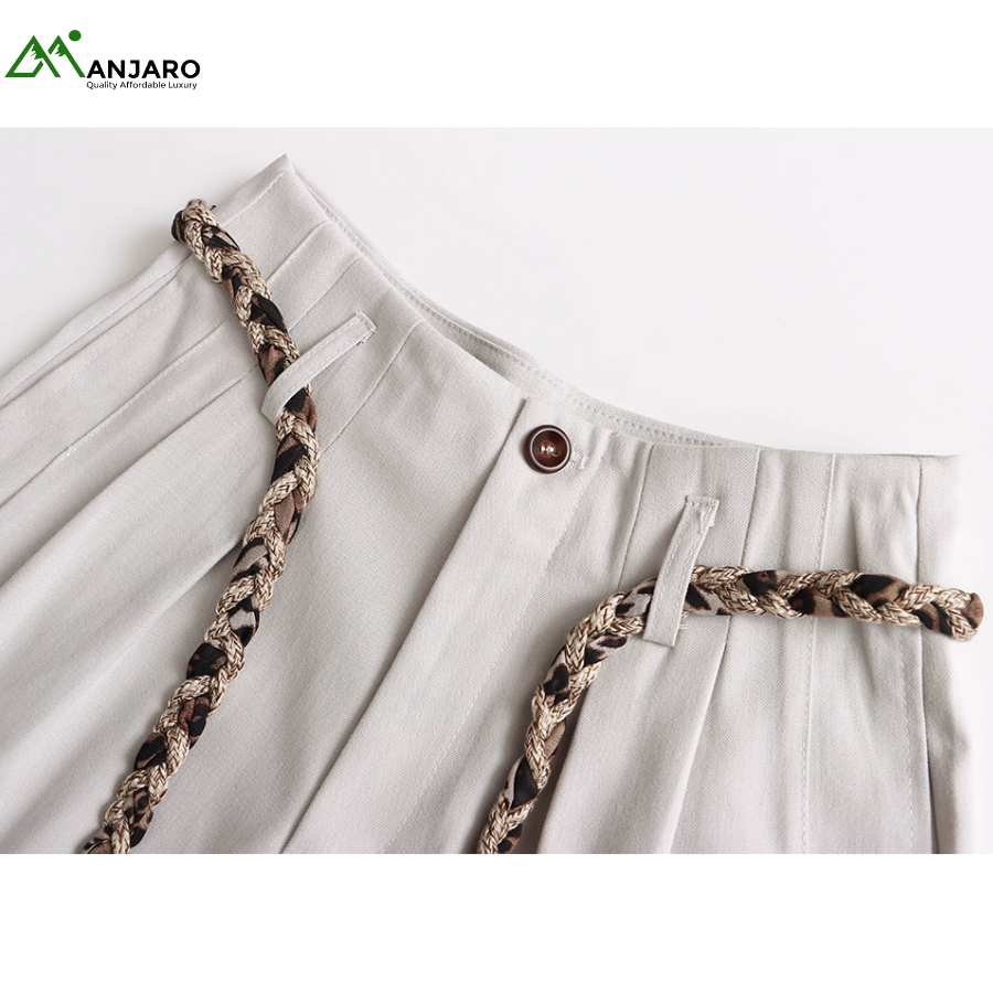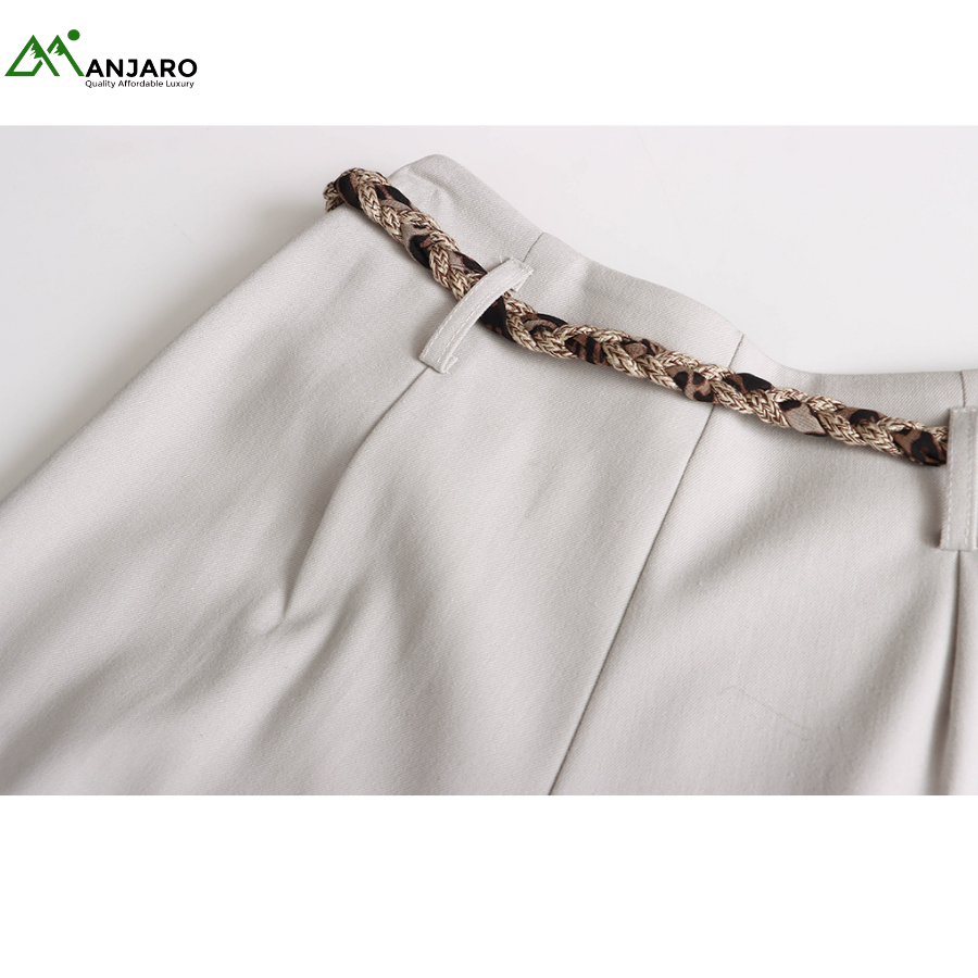 Waist: High-waisted with a chic belt for a refined, tailored look