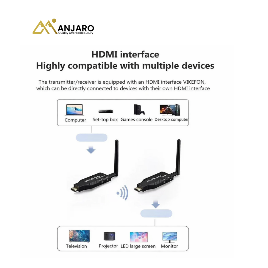 Experience seamless high-definition streaming with the Portable 100m Wireless HDMI Video Transmitter and Receiver — the ultimate solution for professional presentations, home entertainment, live events, and conference setups. Designed to transmit Full HD 1080p video and audio signals wirelessly up to 100 meters, it eliminates messy cables without compromising quality. Featuring low-latency transmission, strong anti-interference technology, and easy plug-and-play setup, this device ensures crystal-clear visuals and smooth playback between your HDMI source and display. Perfect for classrooms, offices, TV setups, and surveillance monitoring systems.