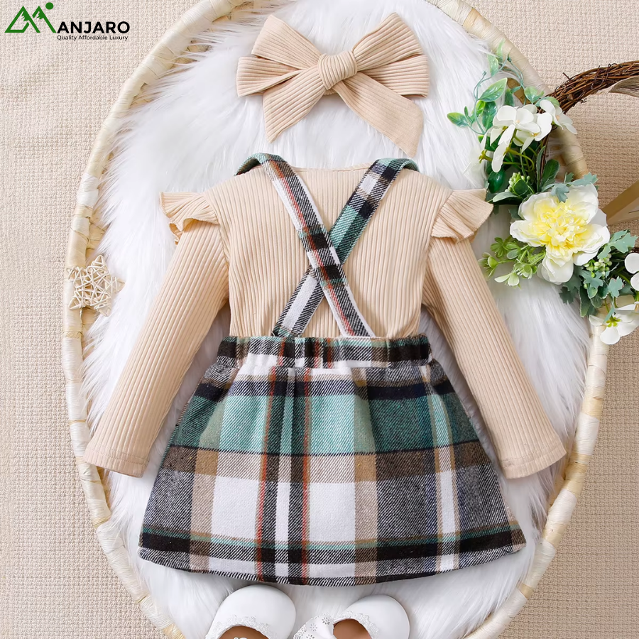 The knitted top provides warmth without bulk, while the checkered skirt adds a timeless, stylish edge. Its durable stitching and child-friendly materials ensure long-lasting wear, making it ideal for both casual and formal occasions during cooler seasons.
